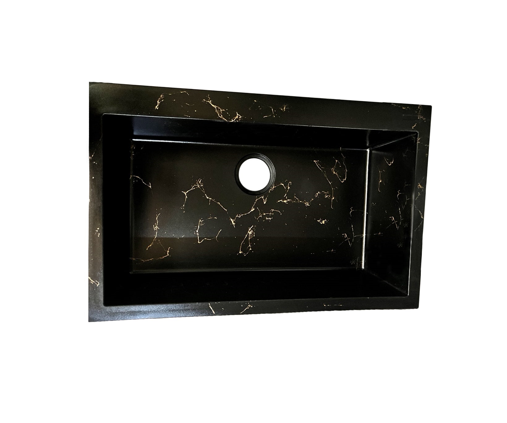 سینک گرانیتی مشکی رگه طلایی مواد خارجی توکار 115 در 50 متالیک رنگ ثابت ضد لک ضد خش ضد رسوب پنج سال گارانتی با سیفون برند لوتوس۴٬۵۰۰٬۰۰۰ 18%